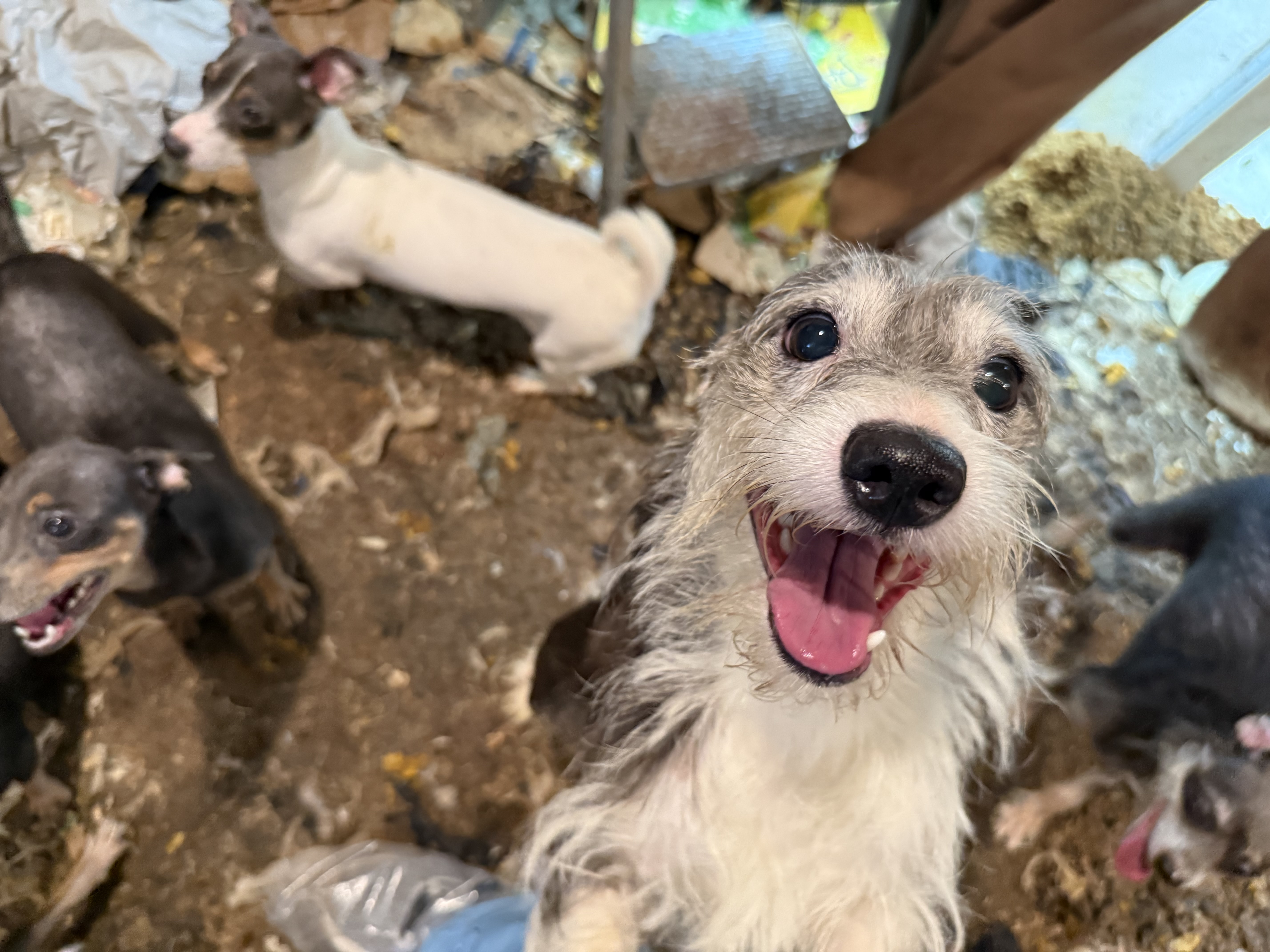 Still all 40 mix breed small dogs and puppies survived their living conditions and are now in safe hands of the Humane Society. The sheer number of animals makes triage in the back lot an enormous task.