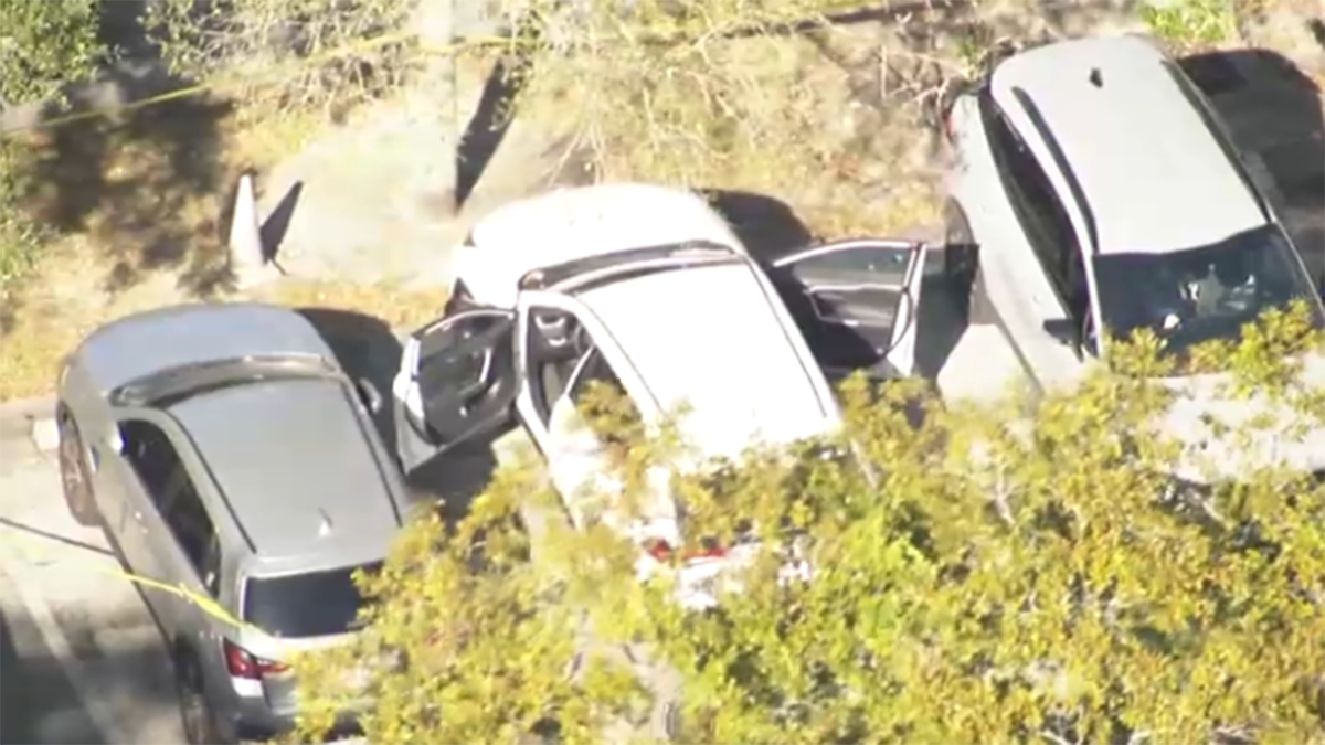 Aerial footage showed the woman’s body inside a car that had apparent bullet holes in the Aveda Institute parking lot.