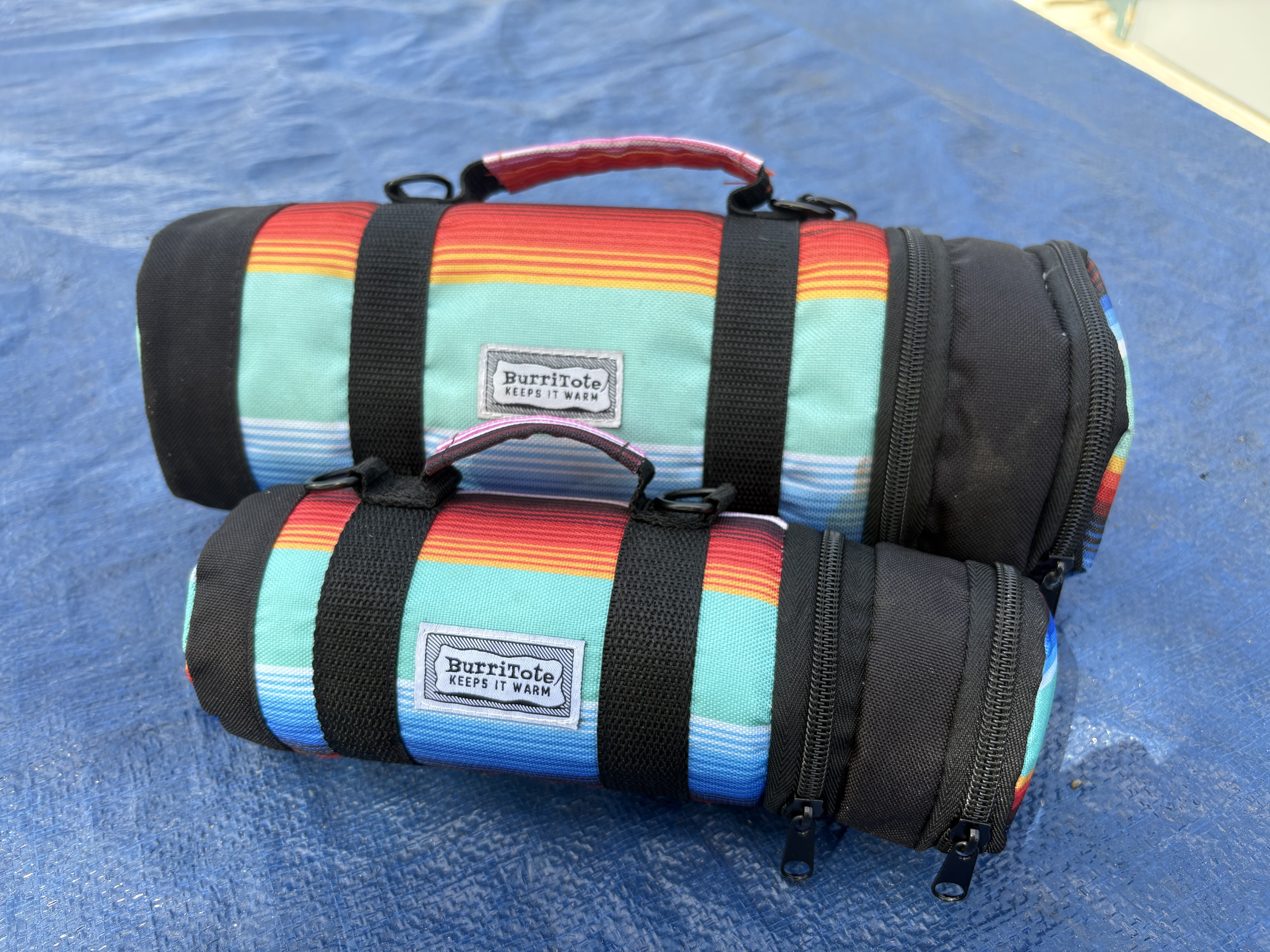Made from the same material as a cooler bag, the BurriTote is a bag that keeps your burrito warm horizontally, for easy and soggy-tortilla-free transportation. A zipper closure on one end keeps salsa to-go cups cold, Dahl said.
