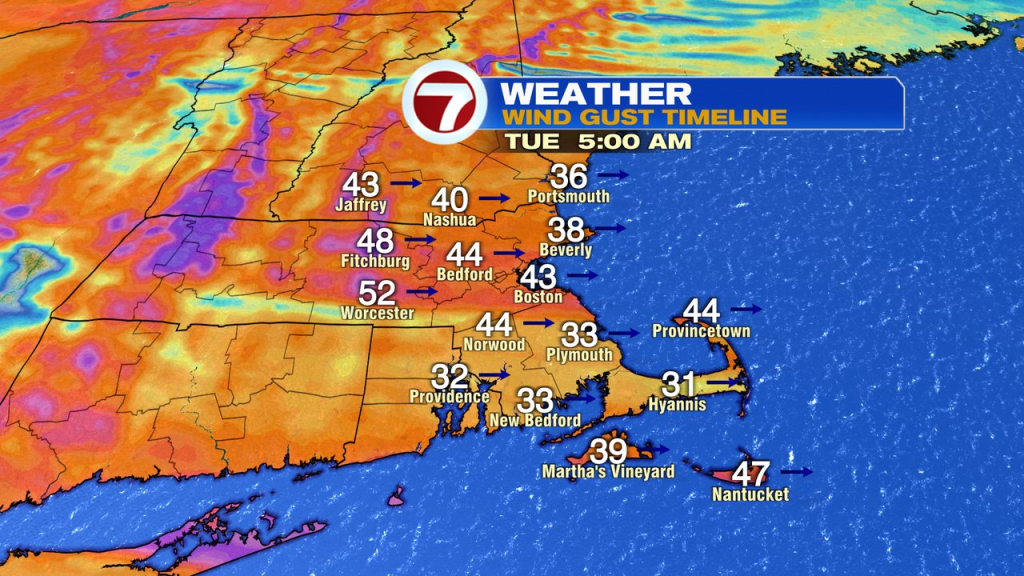 Once the rain tapers late-day from west to east, temps start to crash. As colder air pours back in this evening, the big puddles and leftover slope/slush will freeze up. Winds start to ramp up too, gusting 30-50mph overnight. In fact, in the Worcester Hills, gusts could exceed 50mph, and because of that potential, a high wind watch is in effect. That goes through tomorrow.