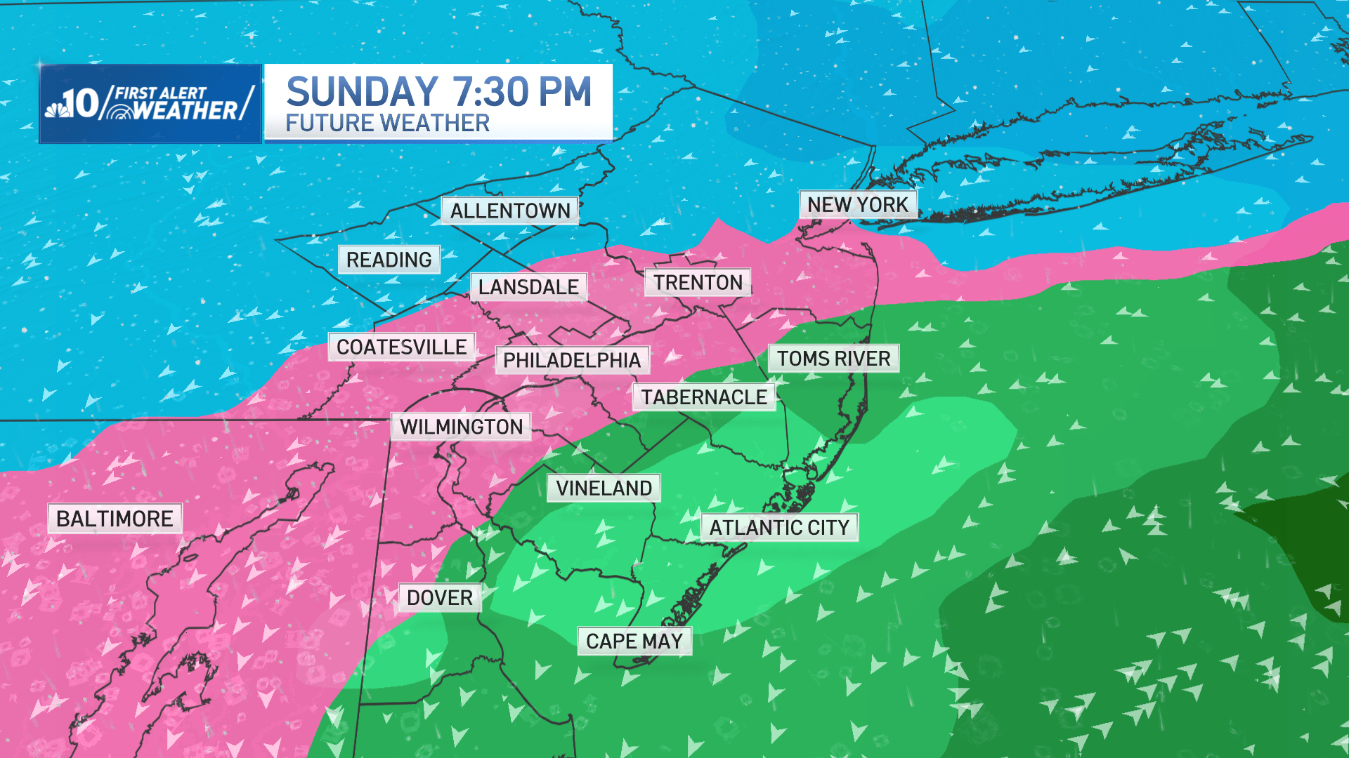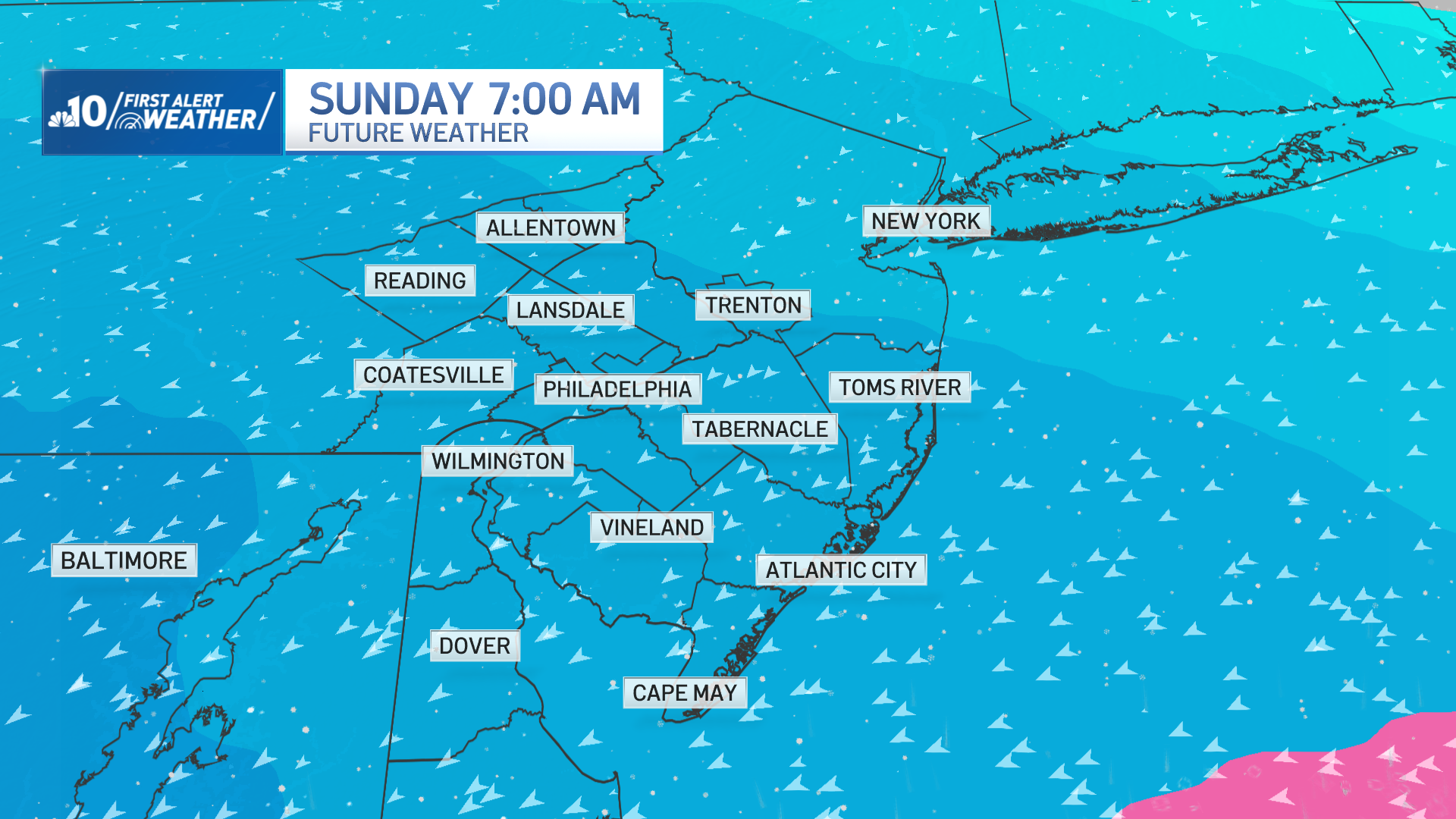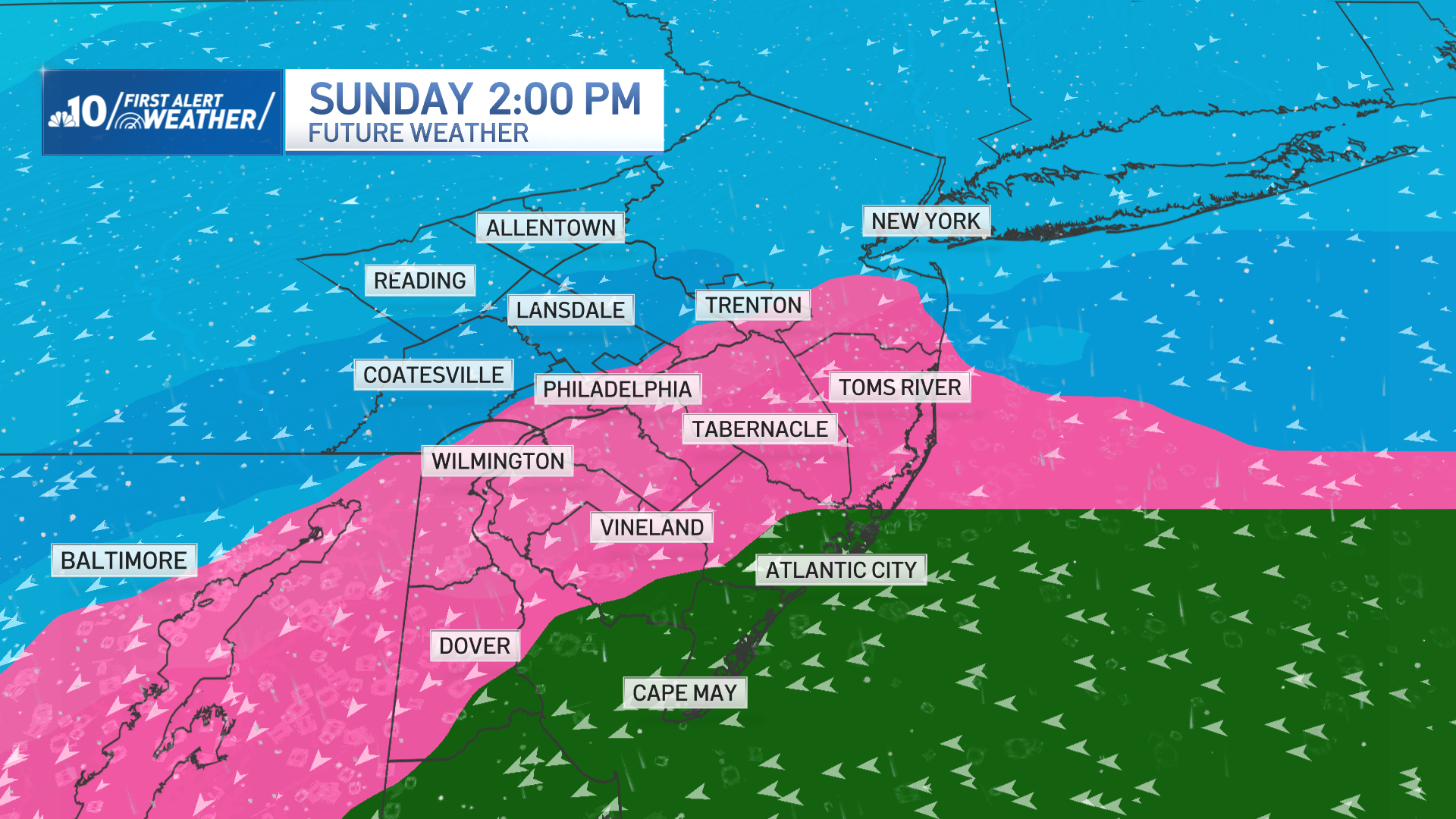 The setup begins Friday with a cold front that’ll usher in an arctic blast and bring us the coldest weather we’ve seen since last January. Morning temperatures in Philadelphia will drop to the lower teens, with even colder conditions in the suburbs and South Jersey. With the wind blowing, it will feel like zero on Saturday morning. We’re looking for a high temperature of only 20 degrees on Saturday afternoon.