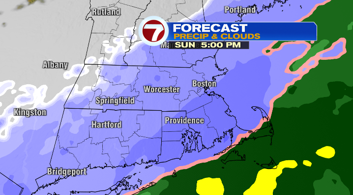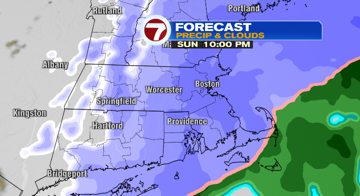 Around mid-afternoon moderate to heavy snow will move in, with the heaviest snow south and east of Boston.