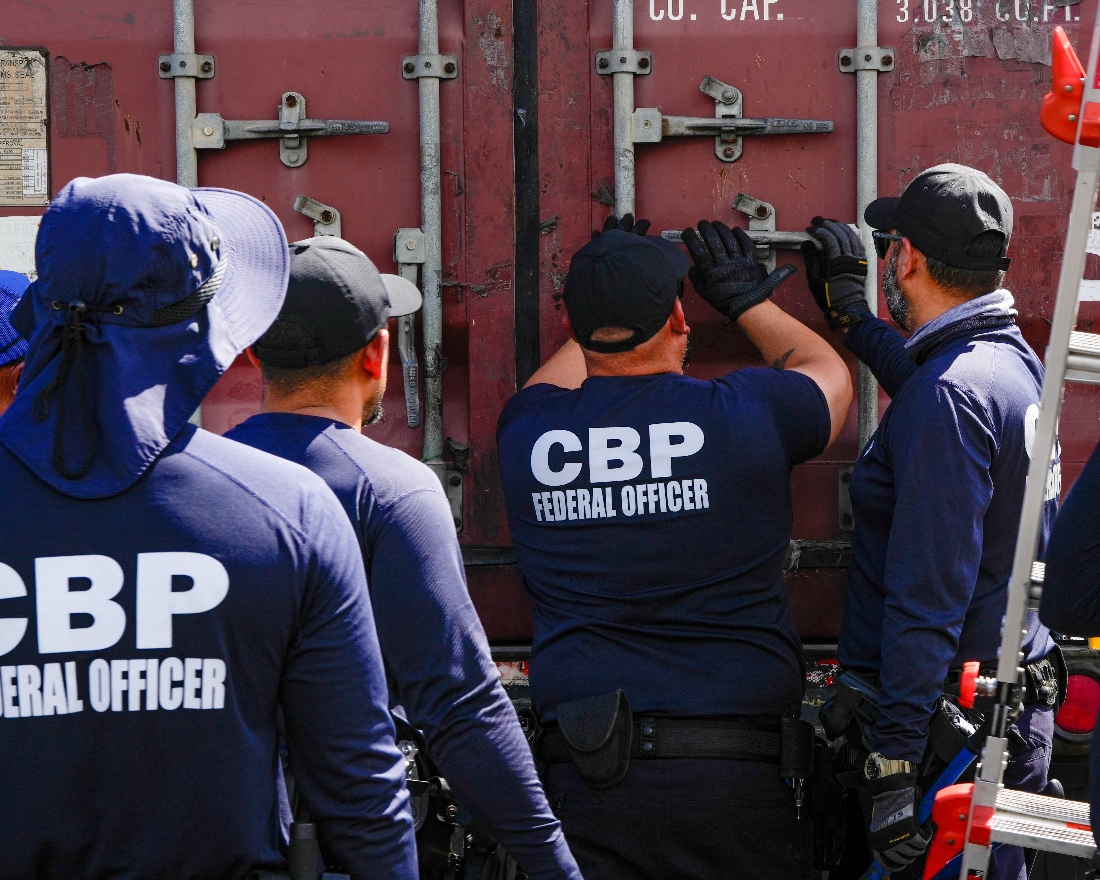 USCBP said officers with the Anti-Terrorism Contraband Enforcement Team picked a container to inspect and found eight duffel bags that were hidden among pallets.