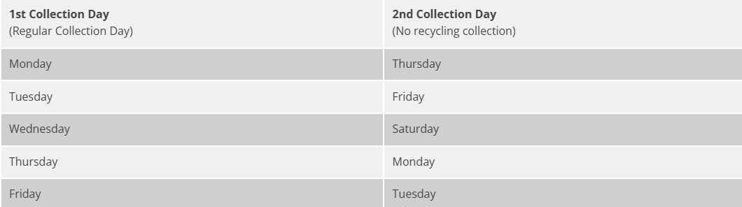 However, officials said, recycling collection will still only happen once a week on the first collection day of the week.