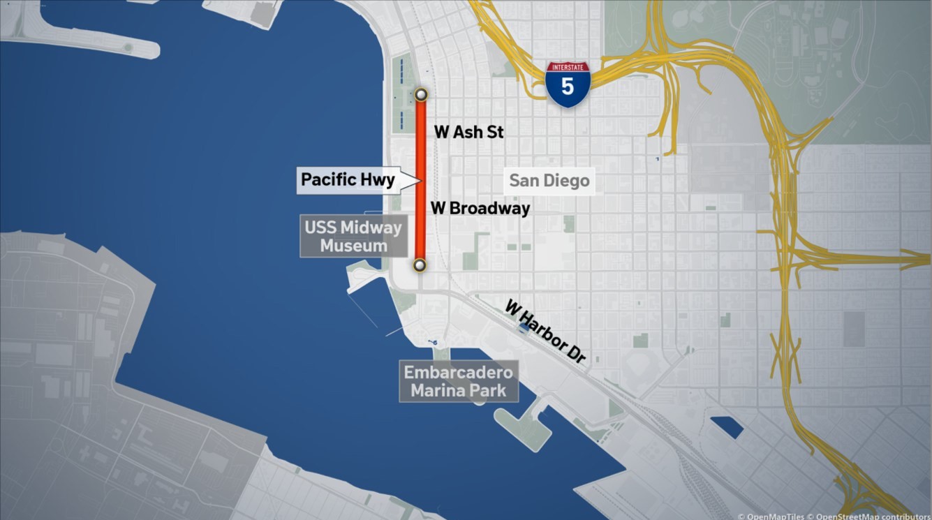 - Where: Harbor Drive, from the County Administration Building to the USS Midway Museum