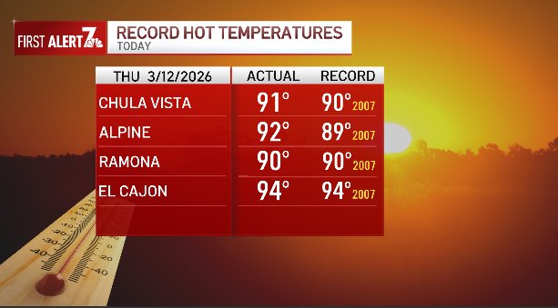 A strong ridge of high pressure combined with weak offshore flow is building across the region and bringing unprecedented heat. Here is a look at the record high temperatures we saw Thursday.