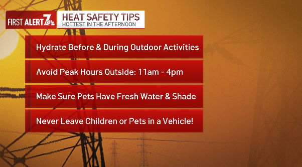 With that kind of heat, there’s a widespread risk of moderate heat-related illness for anyone spending long periods outdoors, so be sure to stay hydrated, take breaks, and try to limit time outside during the hottest part of the day.
