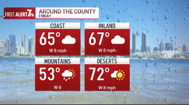 - Valleys: cloudy, chance showers – mid to upper 60s