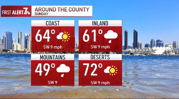 San Diego weather: Scattered rain chances and dry conditions Sunday
