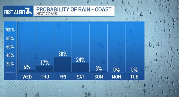 So far preliminary rainfall totals could be around 0.10″ to 0.25″ for coastal and valley communities, but the exact timing and amounts are still uncertain—so stay tuned!