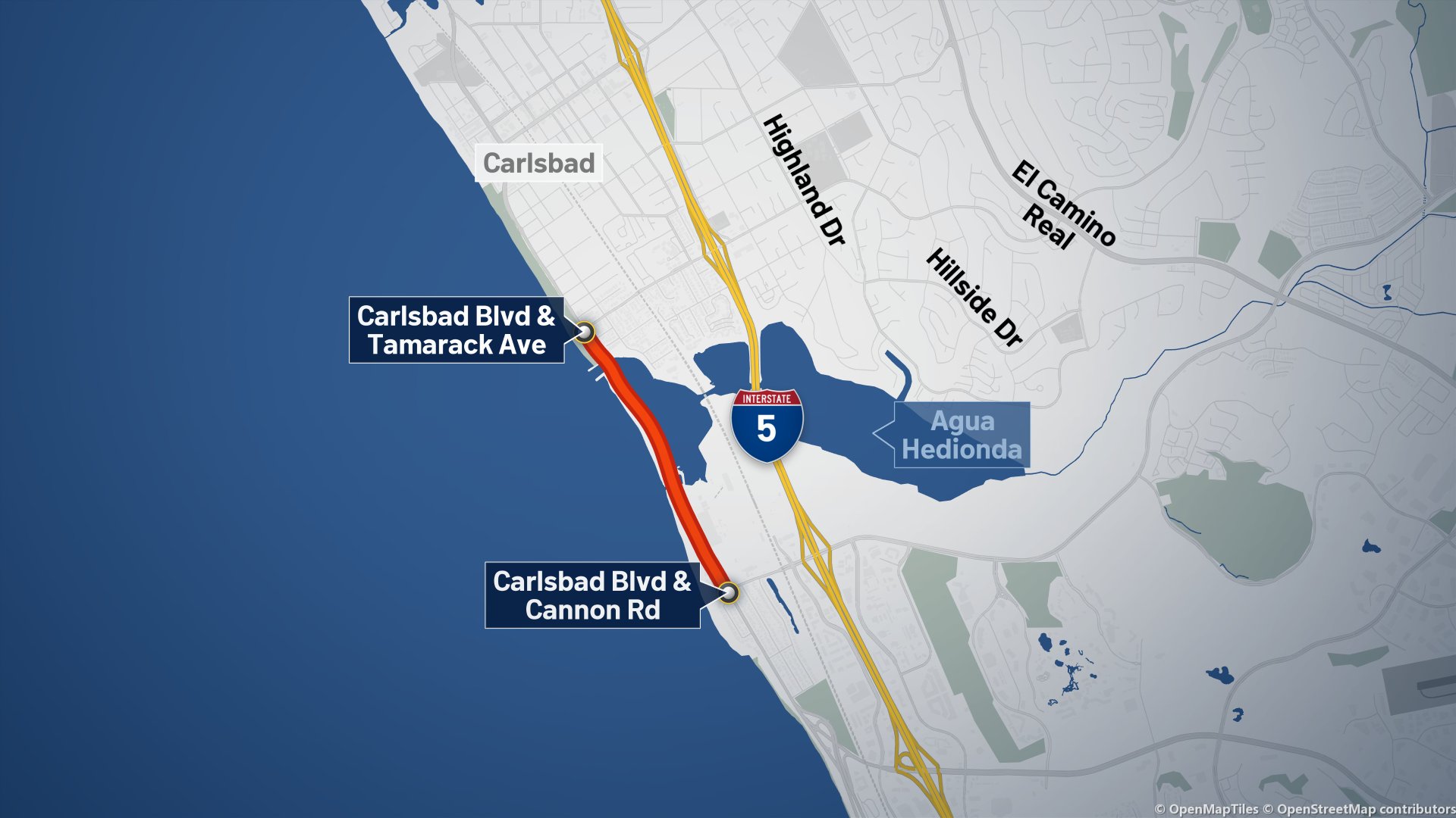 Southbound Carlsbad Blvd between Tamarack Ave. and Cannon Rd. was closed for several hours as the investigation continued.