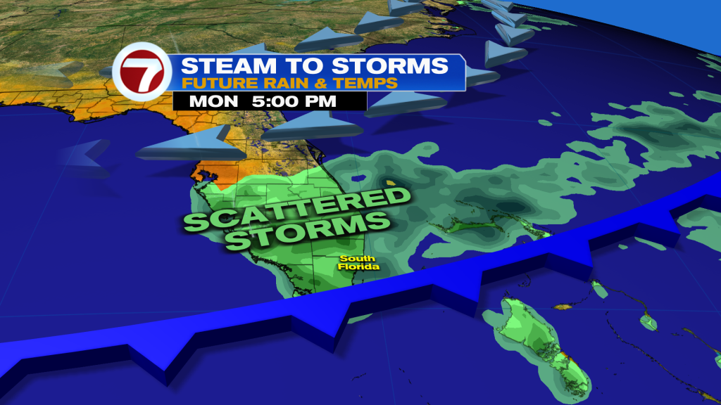 Looking ahead, our best chance of rain for at least the next week arrives on Monday as a cold front sweeps across South Florida. Scattered showers are likely, but this doesn’t look like a significant rain event.