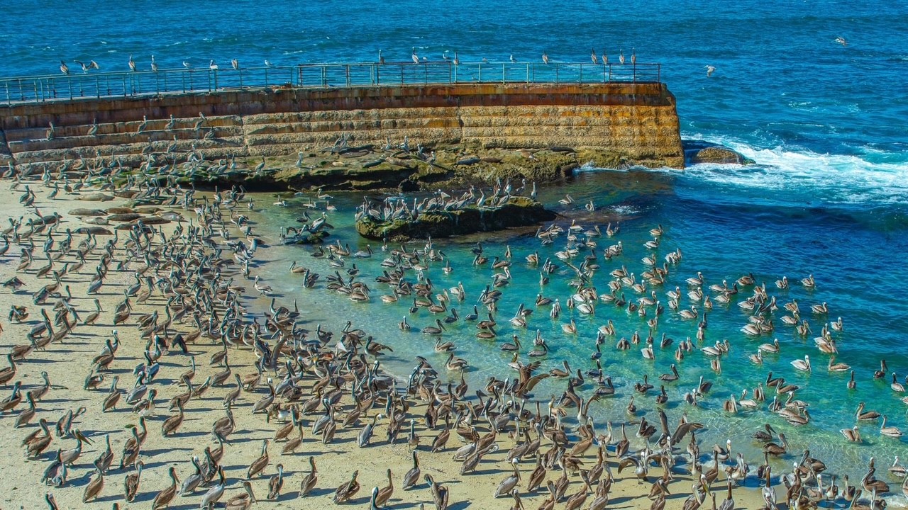 Thousands of pelicans swarm Ocean Beach for a snack and a party on the OB pier