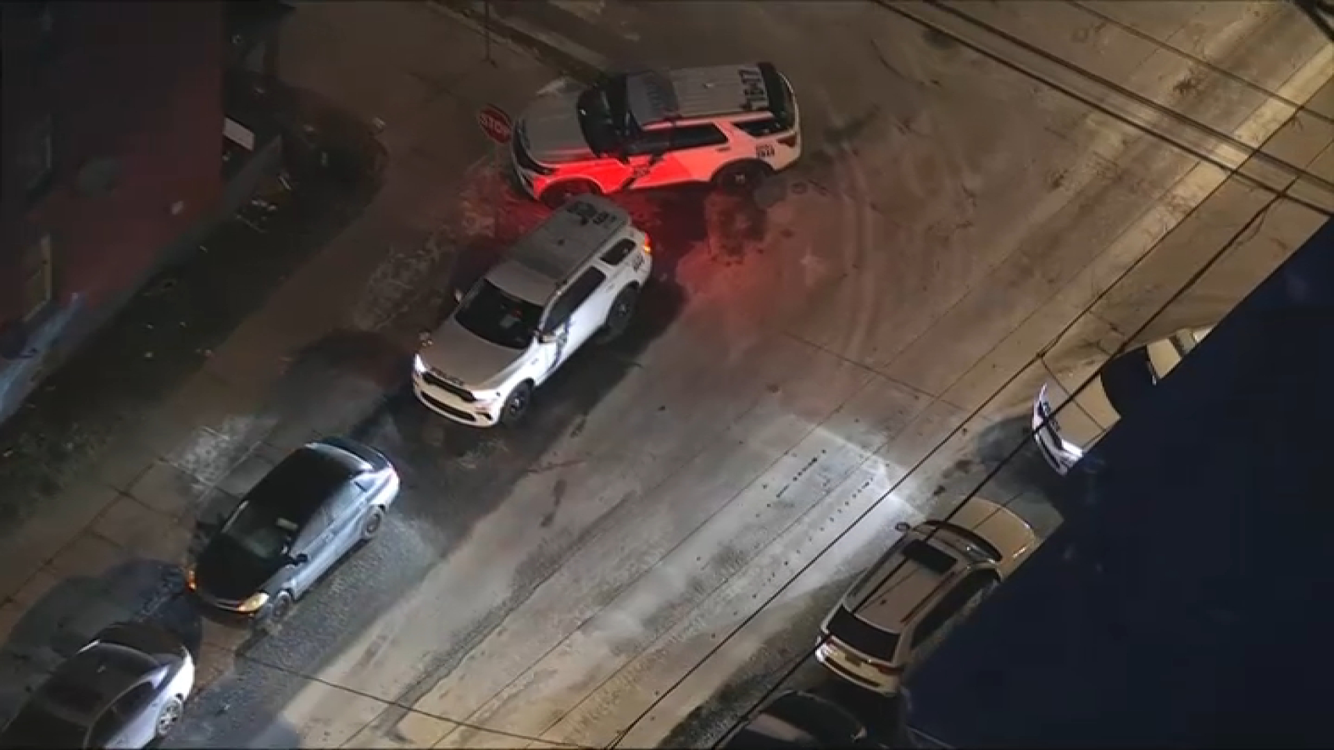 SkyForce10 was over the scene around 5:30 p.m. where several police cars could be seen outside of rowhomes.