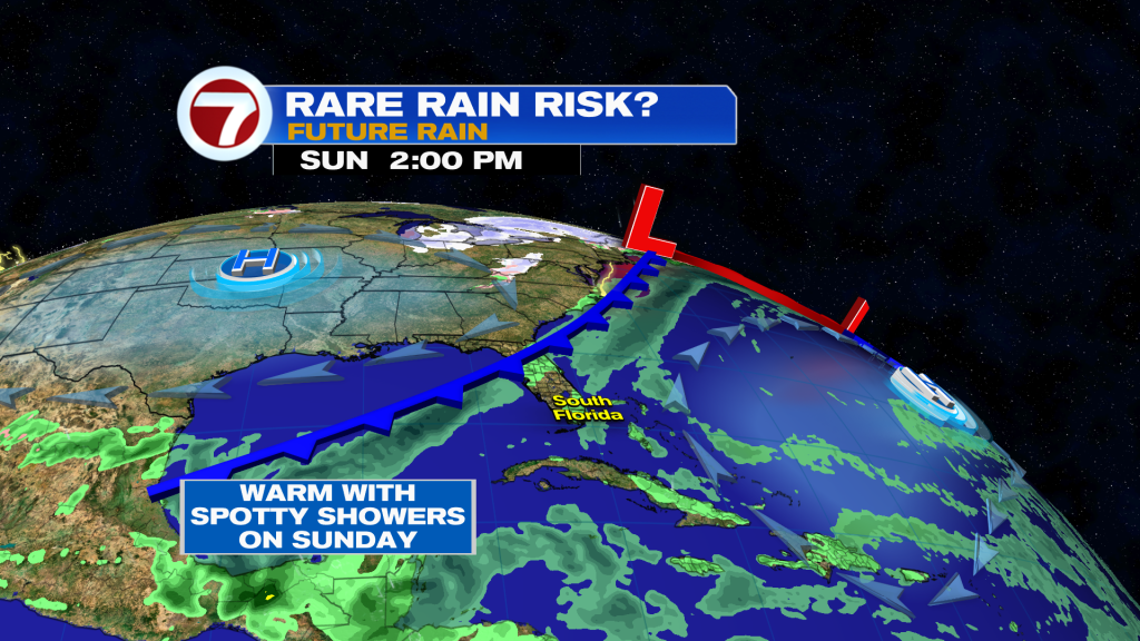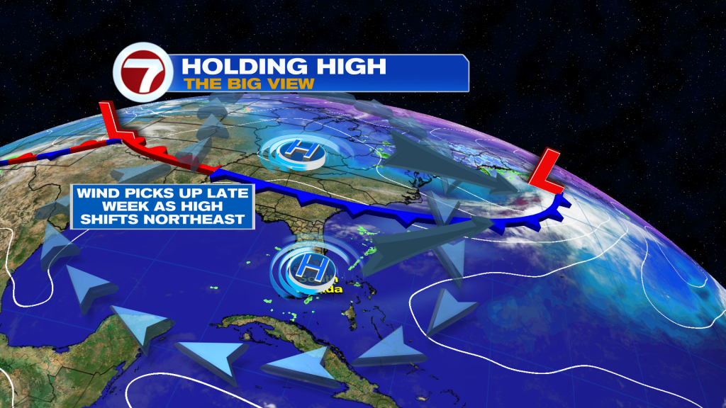 Heading into Thursday, some minor changes will take shape as high pressure currently on top of Florida weakens and shifts toward the Atlantic Ocean while another area of high pressure strengthens near the northeastern US.