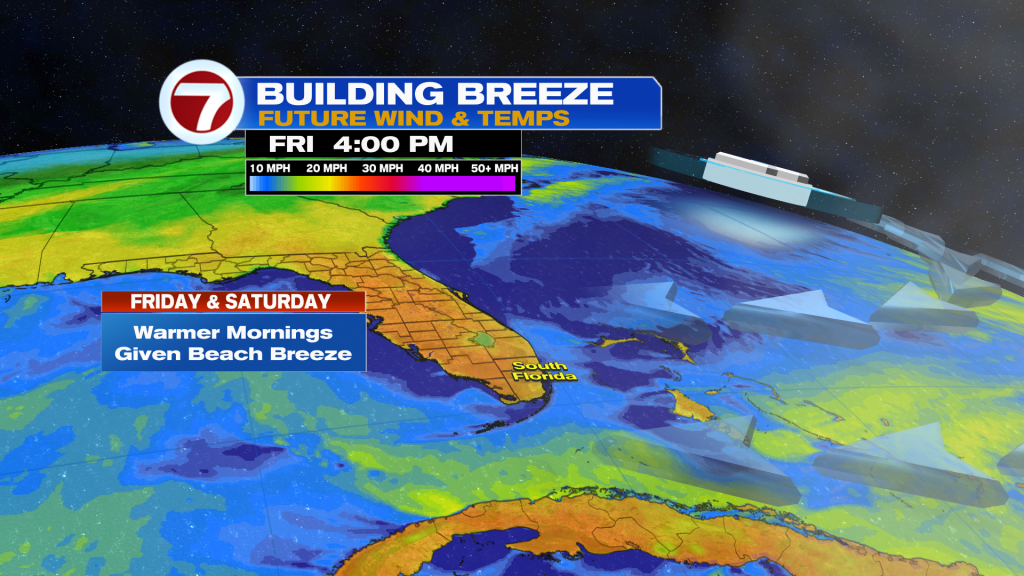 This subtle switch will usher in a building breeze, with breezy conditions forecast for Friday into Saturday.