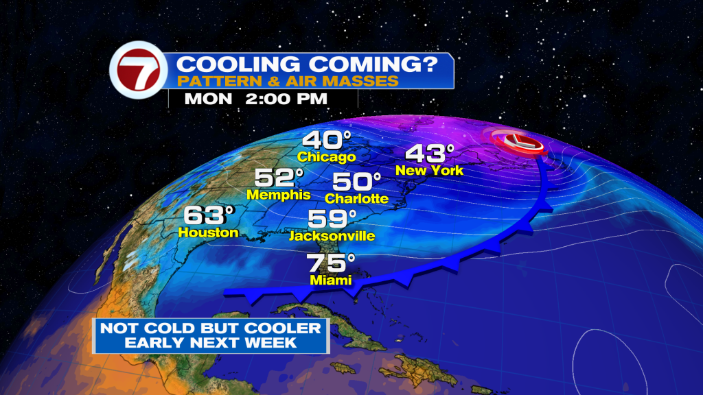 That wind then ramps back up early next week out of the northeast behind the front’s passage Sunday night. That wind direction will make for milder temperatures, especially during the day, but the cold will not be maximized given the onshore wind opposed to the cold, land air.